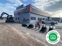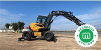 A Mecalac 9MWR wheeled excavator is available for sale; a versatile and compact machine ideal for excavating, loading, transporting, and certified as a crane. This unit was manufactured in 2020, has a total usage of 5,461 hours, and is equipped with a 4-cylinder Deutz diesel engine that delivers 75 hp.