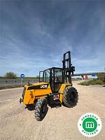For sale: registered all-terrain forklift, JCB model 926. This robust machine is powered by a Perkins 4-cylinder D1004.4 diesel engine delivering 76 hp, built in 2004 with 7,659 hours of operation. It features a 4x4 drive system and is equipped with a triple mast, side shifter, quick hitch, and two auxiliary hydraulic connections. Notably, it also has an approved frog-mouth coupling system for towing.