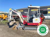 For sale is a Takeuchi TB 216 mini excavator with an operational weight of 1,865 kg, manufactured in 2015 and with 2,973 hours of use. This machine will be delivered freshly painted, fully serviced, and with maintenance up to date. The price includes three additional buckets.