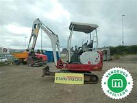 This is a 2016 manufactured excavator equipped with three buckets. The machine has a total of 2,350 operating hours and weighs 1.8 tons. Its transport dimensions are 0.98 meters in width and 2.36 meters in height, with tracks measuring 230 mm in width. It provides a maximum lateral reach of 4.03 m and an excavation depth of 2.39 m.