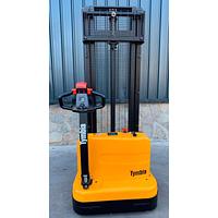 Electric traction and lifting stacker with a special length to measure (1350 mm), a load capacity of up to 1200 kg, and a lifting height of up to 2900 mm, with fork dimensions of 60x170x1150 mm.
