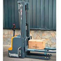 The TYMBIA electric stacker is equipped with a lithium battery, offering a capacity of up to 2000 kg and a maximum lifting height of 5000 mm. The equipment features a powerful 24V/300Ah lithium battery, providing reliable power for various industrial tasks.