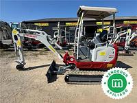 The Takeuchi TB216 is a compact excavator from the year 2017 that has a total of 1,700 hours of use. This model has an operating weight of 1.7 tons, facilitating its maneuverability in confined spaces, and comes with three buckets.
