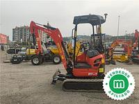 A Kubota U-17 3a mini excavator from 2016 is available for sale, with a total of 2900 hours of use. This equipment is delivered freshly painted, fully inspected, and with maintenance completed. Additionally, three buckets are included in the price.