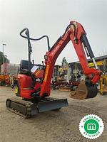 Key specifications: Year: 2013; Hours: 1500; Weight: 1.12 t; Transport length: 2.98 m; Transport width: 0.99 m; Transport height: 2.23 m; Track width: 180 mm; Maximum lateral reach: 3.38 m; Digging depth: 1.8 m; Engine manufacturer: Kubota; Engine model: D722BH6; Engine power: 7.4 kW; Displacement: 0.719 l; RPM: 2020; Number of cylinders: 3.