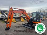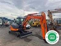 The Hitachi ZX65USB-3 is a compact crawler hydraulic excavator manufactured in 2011, with a total operating time of 7,000 hours. This model includes three buckets, allowing for greater versatility in various applications.