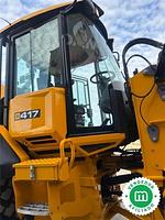 Articulated wheel loader JCB model 417 S5 HT, registered and manufactured in 2024, with a total usage of 455 hours. It is equipped with a Stage V diesel engine, model JCB 448 TA5-97, producing 130 Turbo HP and a displacement of 4,765 cm3. The engine has 4 cylinders.