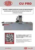 Nuestro modelo ELITE CU PRO es la máquina más avanzada para la fabricación y el afilado de cuchillas. Incorpora un motor de acción directa: esto permite tener hasta un 20% más de potencia que otros motores con transmisión por correa. El panel de control incluye una pantalla táctil a color de 10". Esta pantalla ha sido diseñada con una interfaz rápida y fácil de usar que facilita la programación de la máquina. Permite crear y guardar programas fácilmente, ideal para el afilado y fabricación de cuchillas, ya sea en series o de forma puntual, gracias a su programa de producción estándar. Se puede programar un ciclo de desbaste con su velocidad de carro, un ciclo de acabado con otros parámetros y velocidad, y un ciclo final para pulido. Todos estos procesos son realizados por la máquina simultáneamente.
