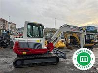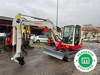 Se vende una excavadora Takeuchi TB250 del año 2010 con 1,416 horas de uso. Este modelo compacto incluye tres cazos y está diseñado para operar eficientemente en espacios reducidos.