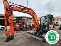 El Doosan DX55 es una excavadora de orugas de tamaño medio fabricada en 2010, con aproximadamente 2,921 horas de operación. Está equipada con aire acondicionado y incluye tres cubos.