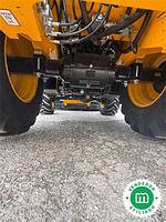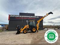 La transmisión de la retroexcavadora es del tipo Powershift con 6 velocidades y Torquelock, permitiendo un funcionamiento eficiente con una velocidad máxima de 40 km/h. En cuanto a los implementos, incluye una pala de almeja 4 en 1, horquillas porta-palets, un martillo hidráulico, y cazos de 40 cms, 60 cms y de limpieza de 1.50 m. Para la comodidad del operario, la cabina está equipada con una pantalla LCD a color de 7", calefacción, aire acondicionado y un asiento con suspensión neumática calefactado. La máquina también cuenta con sistemas avanzados como SRS para la suspensión de brazos delanteros y diversas funciones automatizadas, asegurando un alto nivel de rendimiento. La venta incluye garantía de 1 año y el precio es de 97.000 € más IVA.