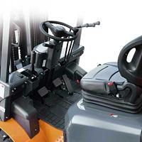 Comodidad de operación mejorada: El diámetro del volante se ha reducido para disminuir la fatiga del brazo. El espacio para el pedal se ha ampliado. Asiento con diseño ergonómico. El retroiluminado del medidor es fácil de leer y el código de falla del motor se muestra en el medidor. La vista horizontal del mástil se ha mejorado. Se ha configurado la reducción de los amortiguadores. El espacio para la cabeza se ha ampliado.
