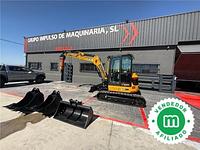Miniexcavadora JCB modelo 50 Z del año 2025, matriculada y lista para su uso, con un peso operativo de 5.000 kg. Este equipo cuenta con un motor diesel fase V Perkins de tres cilindros, capaz de generar 48 cv de potencia.
