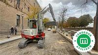 Esta miniexcavadora está equipada con aire acondicionado para el confort del operador, un enganche rápido hidráulico para facilitar el cambio de implementos y cuatro salidas hidráulicas en el balancín que permiten operar múltiples accesorios hidráulicos de manera simultánea. La instalación para un martillo hidráulico amplía aún más sus capacidades. Las cadenas de goma, de 400 mm de ancho, están en excelentes condiciones, con un 90% de su vida útil restante. Incluye un cazo de 60 cm, adecuado para excavaciones de volumen medio.