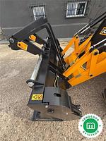 Este equipo viene equipado con diversos implementos, incluyendo una pala de almeja 4 en 1, horquillas porta-palets, y cazos de 40 cm, 60 cm y limpieza de 1.50 m. Su motor Stage V cuenta con una potencia de 81 KW (110 cv), con un desplazamiento de 4.8 litros y 4 cilindros. Incorpora un filtro de partículas y un sistema SCR que utiliza AdBlue.