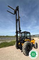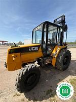 Carretilla elevadora todoterreno matriculada, modelo JCB 926, equipada con un motor diésel Perkins de 4 cilindros D1004.4, con una potencia de 76 CV. Este equipo, del año 2004, cuenta con un registro de 7.659 horas de trabajo y ofrece tracción en las cuatro ruedas (4x4).