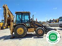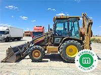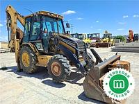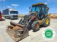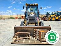 Caterpillar 428D backhoe loader from 2003, fully mechanical. This machine is equipped with three buckets measuring 600, 800, and 400 mm, and includes a hammer installation. It comes with proper documentation and is available for viewing and testing in Madrid.