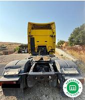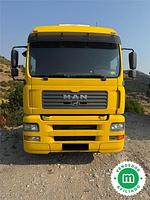 The MAN model 18410F tractor, year 2004, features a MAN LF28 diesel engine with a displacement of 11,967 cm³ and 6 cylinders, providing a power output of 400 HP. This vehicle has a mileage of 438,000 kilometers and is equipped with a hydraulic system, additional air conditioning, and nearly new tires at 80% usage. The Technical Inspection (ITV) and tachograph are valid until February-March 2026.