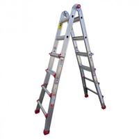 La escalera telescópica transformable TLS 6X4 es una herramienta versátil y robusta, diseñada para alcanzar diferentes alturas de trabajo gracias a sus múltiples posiciones.